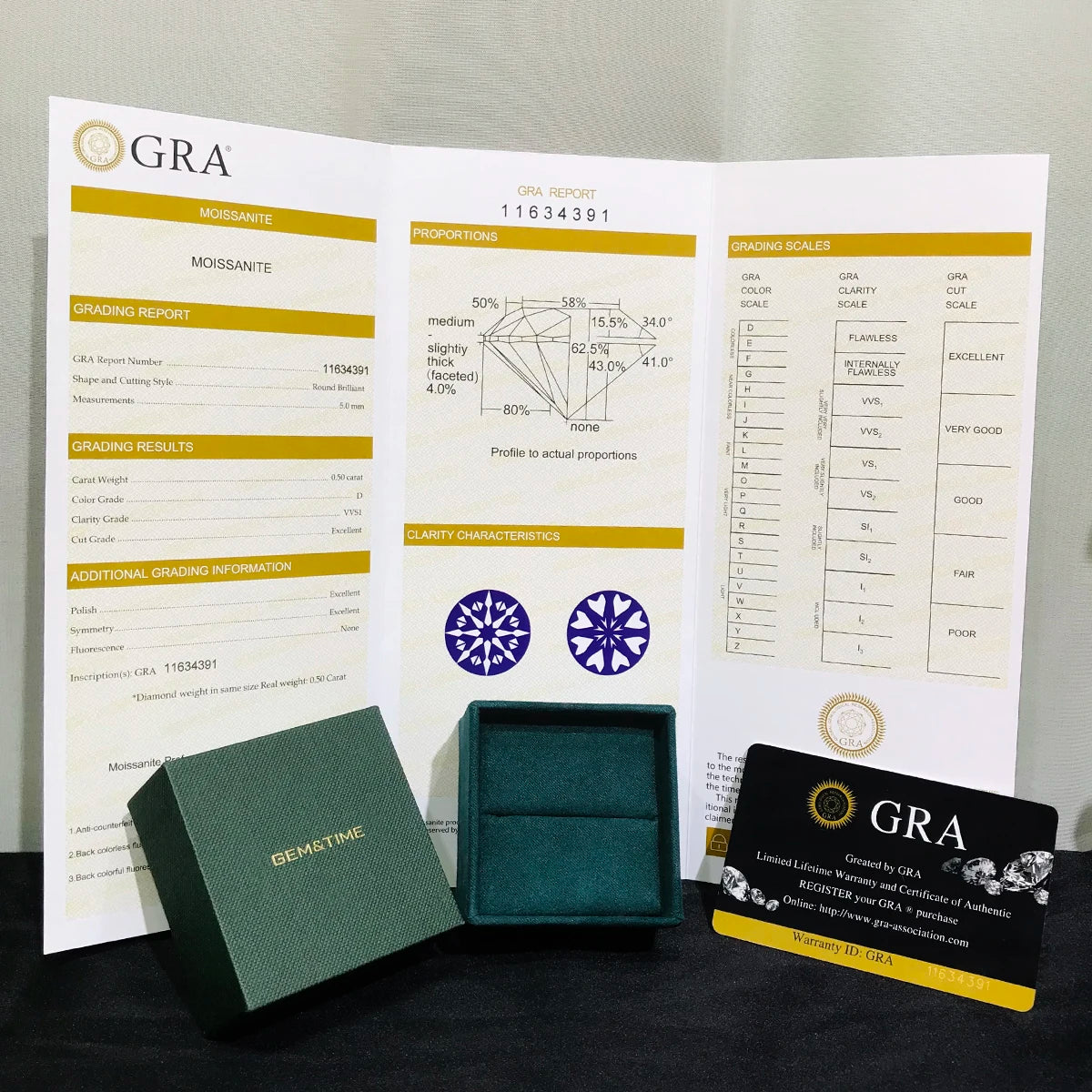 Bague en argent sterling 925 avec Moissanite 1 carat