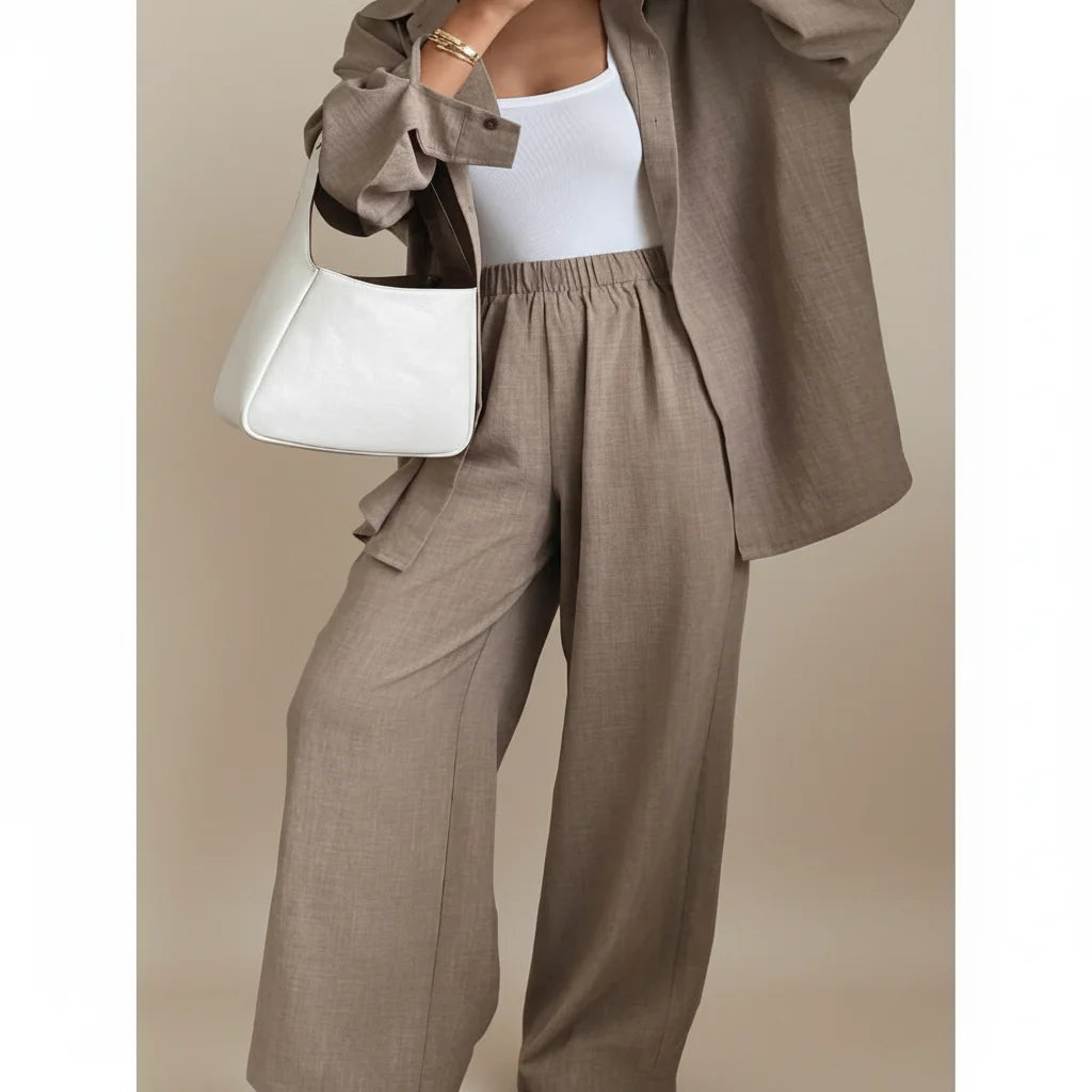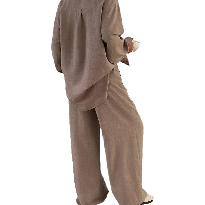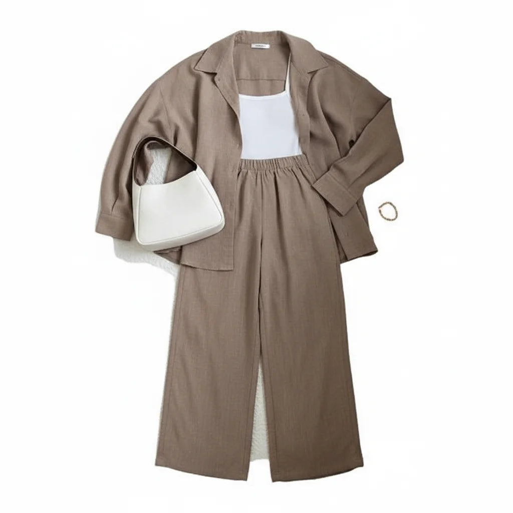 Ensemble Deux Pièces en Denim Imité Élégant – la légèreté chic pour vos journées d’été.Ce set féminin au style décontracté et fluide associe un haut ample à manches courtes et un pantalon large...